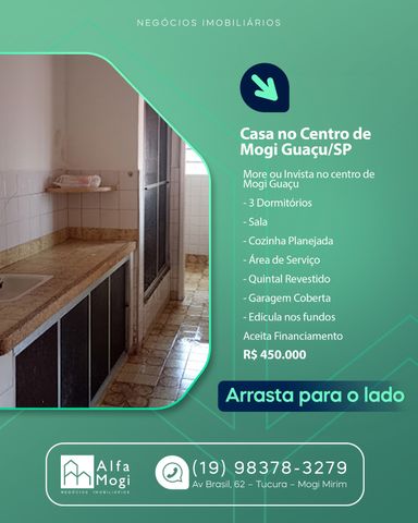 ☑️🔑Casa a Venda - 📍 Centro R$ 450.000,00 More ou Invista no centro de Mogi Guaçu 💥OPORTUNIDADE‼️ ➡️ 3 Dormitórios ➡️ Sala ➡️ Cozinha Planejada ➡️ Área de Serviço ➡️ Quintal Revestido ➡️ Edícula nos fundos ✍🏼 Aceita Financiamento 💰 450.000,00 Agende já sua visita! 📱 19989773557 Alfa Mogi Negócios Imobiliários CRECI 039311J